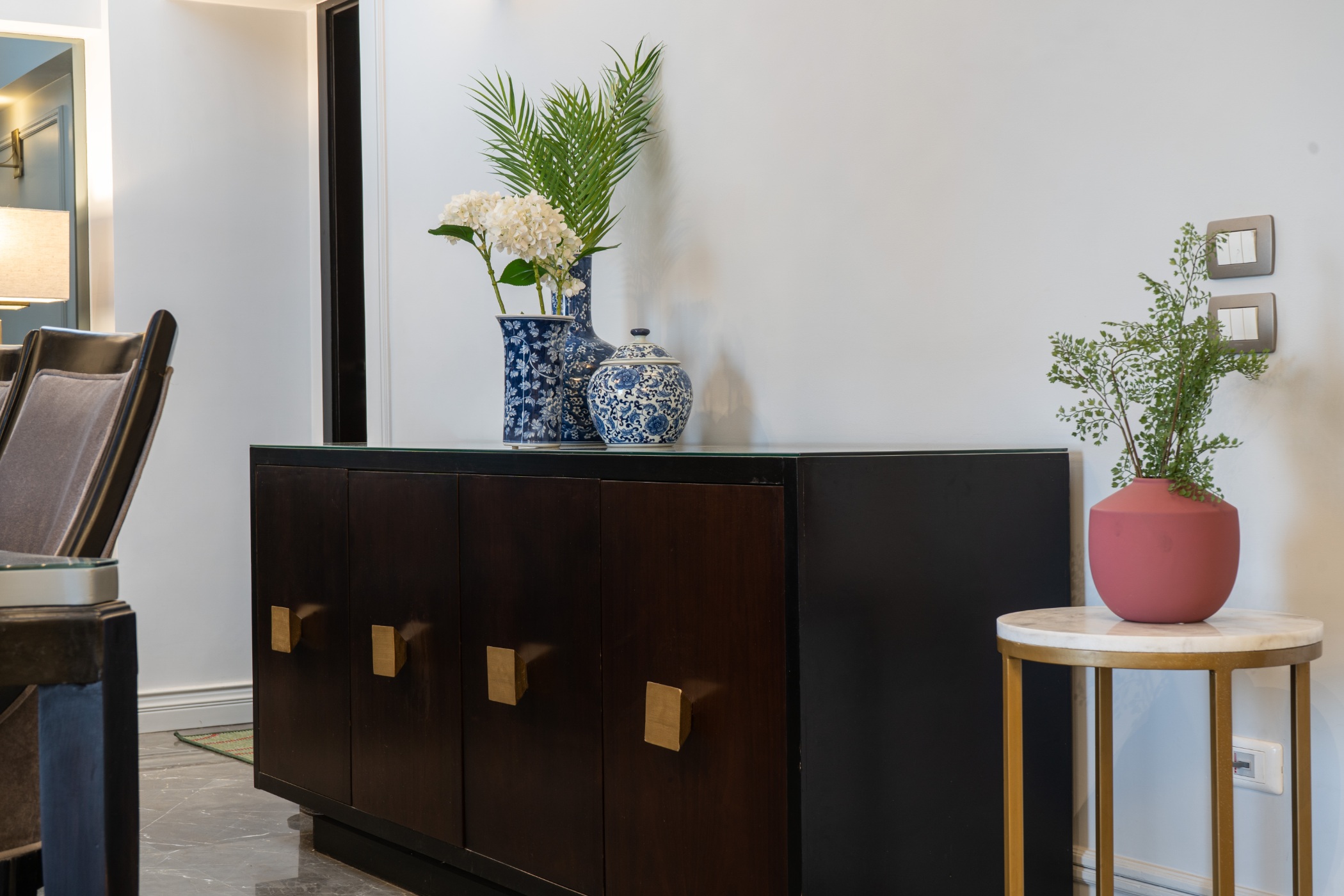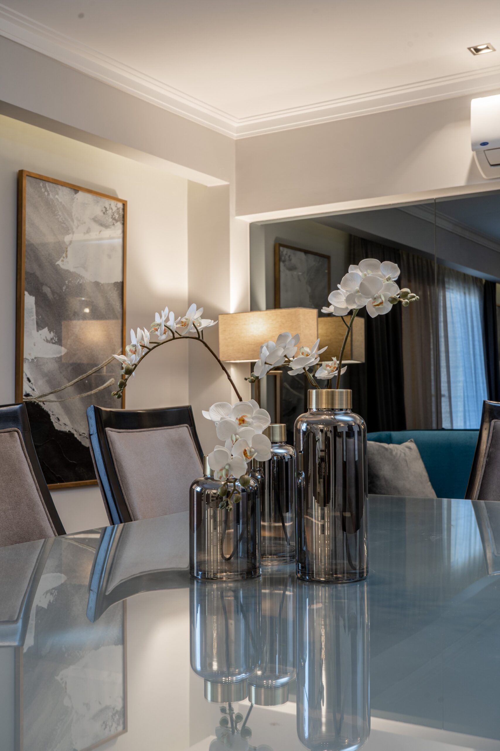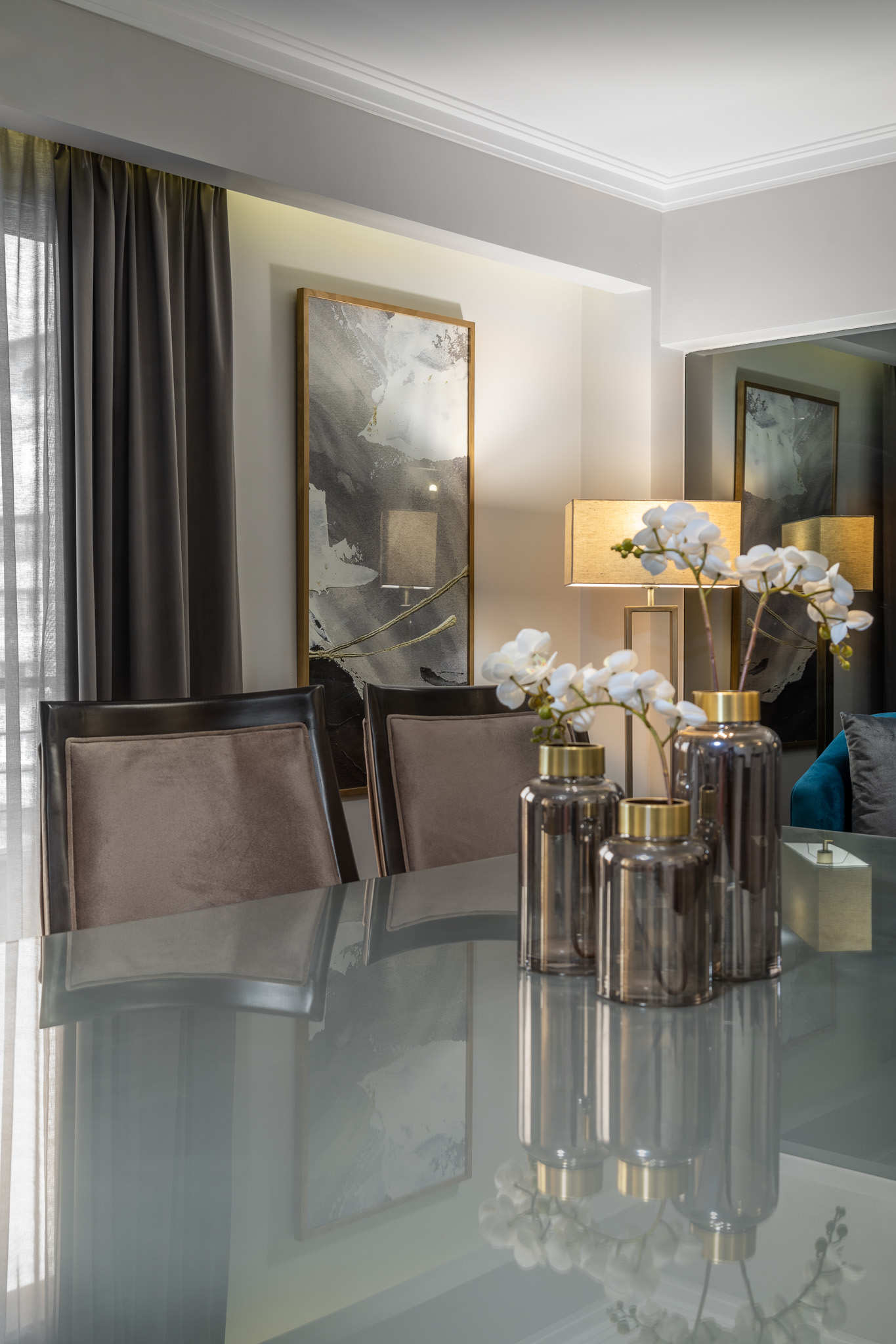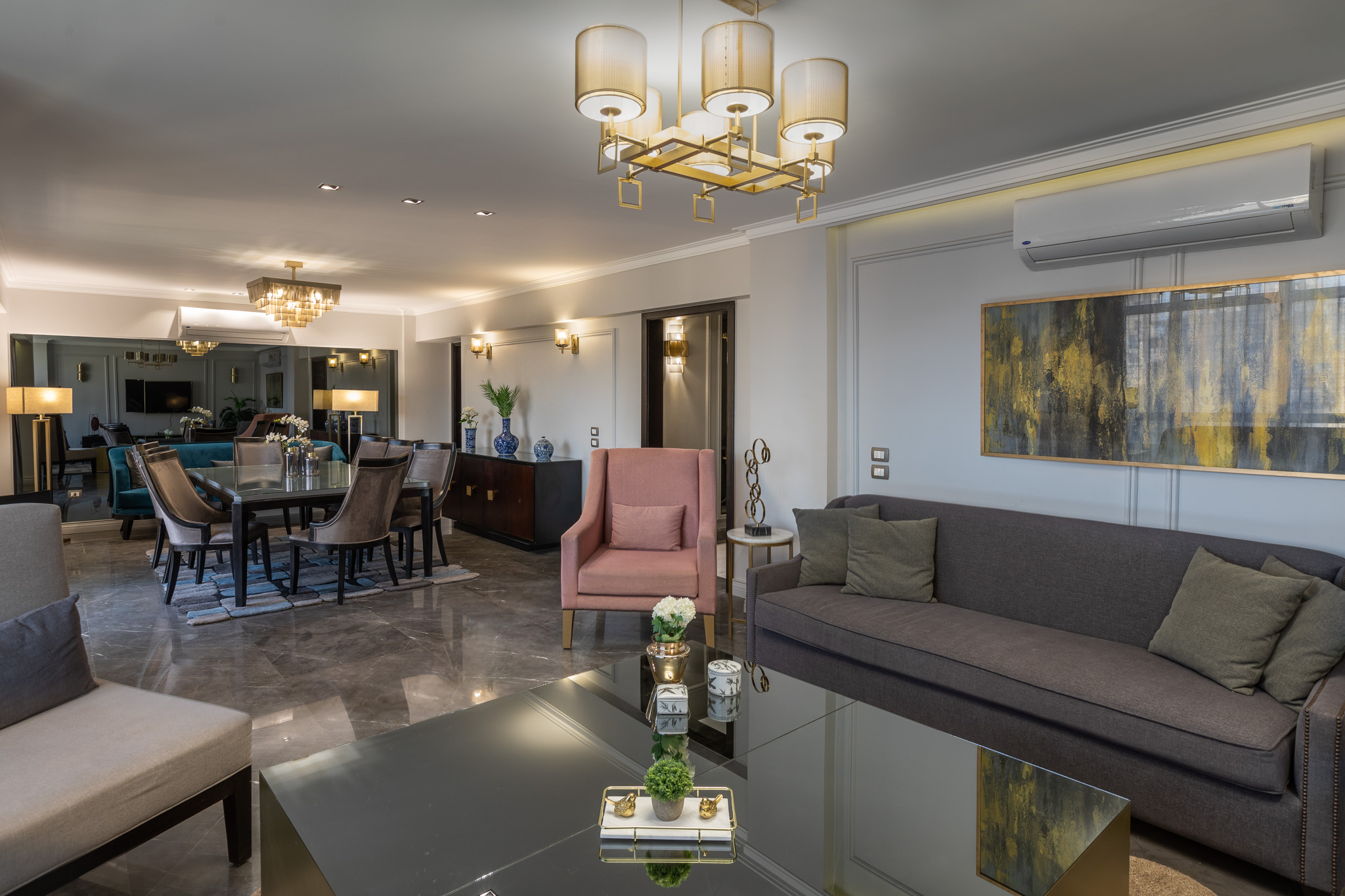 Experience modern living at its finest in this newly constructed residential apartment. The contemporary style and sleek design are perfectly complemented by a stunning teal accent sofa, adding a pop of color and personality to the space.