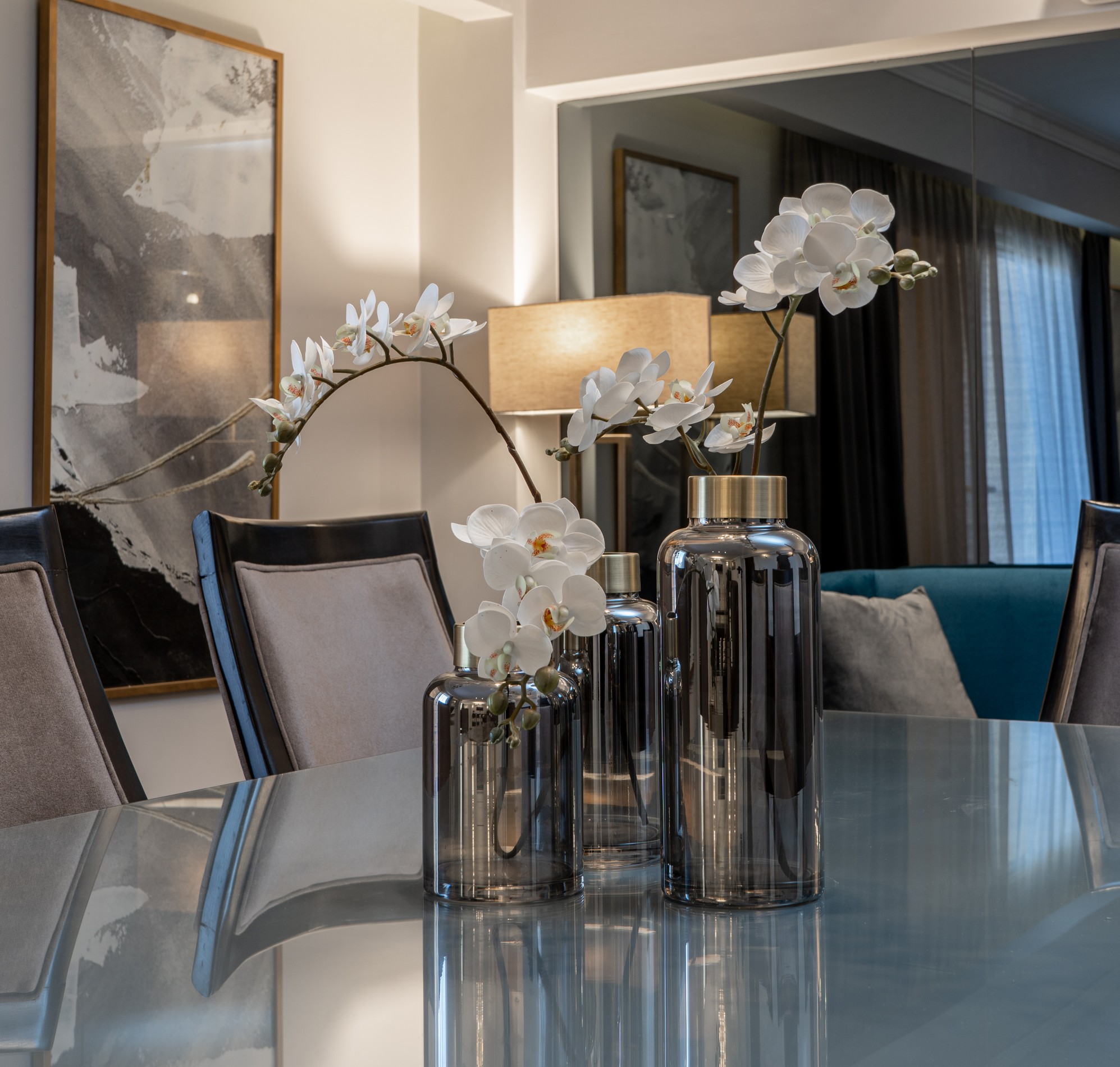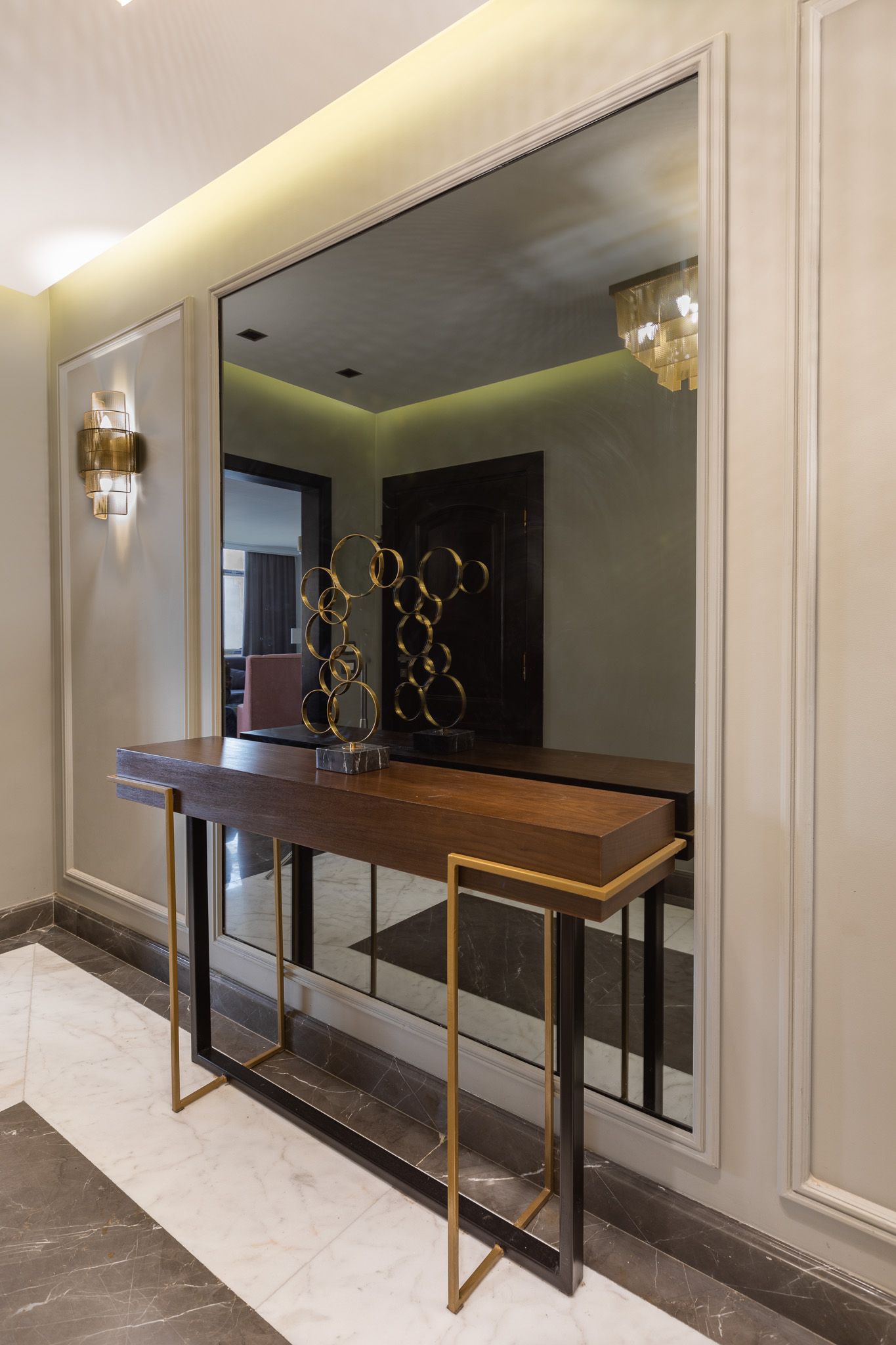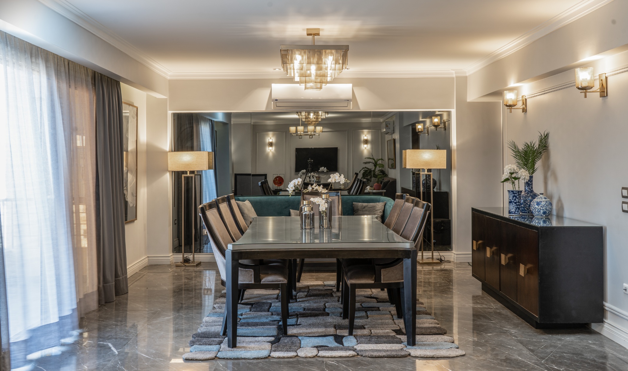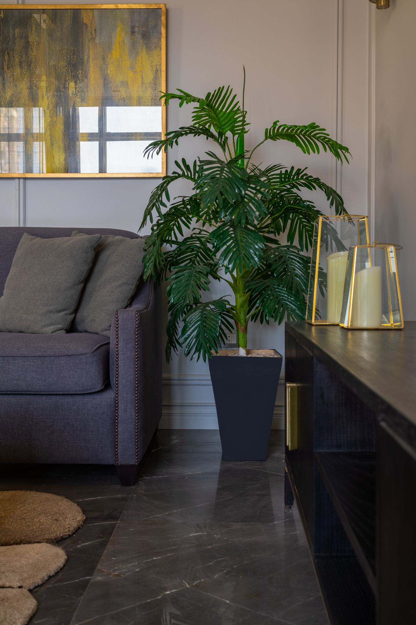 Experience modern living at its finest in this newly constructed residential apartment. The contemporary style and sleek design are perfectly complemented by a stunning teal accent sofa, adding a pop of color and personality to the space.